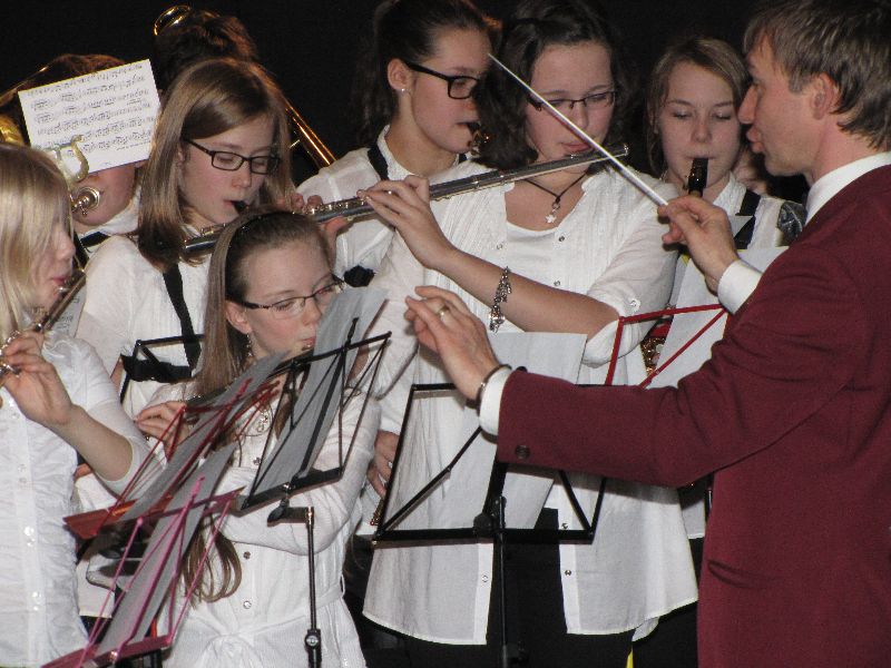 In der bis auf den letzten Platz gefüllten Stadthalle boten das Vororchester, das Jugendblasorchester und das Blasorchester ein abwechslungsreiches Programm. Ein Höhepunkt des Konzertes stellte die “Rhapsody für Euphonium and Concert Band” dar, die Kai Dunkerbeck als Solist gemeinsam mit dem Jugendblasorchester aufführte. Beim Betrachten der Bilder werden Ihnen sicherlich einige Klänge vom Konzert in den Ohren widerhallen.