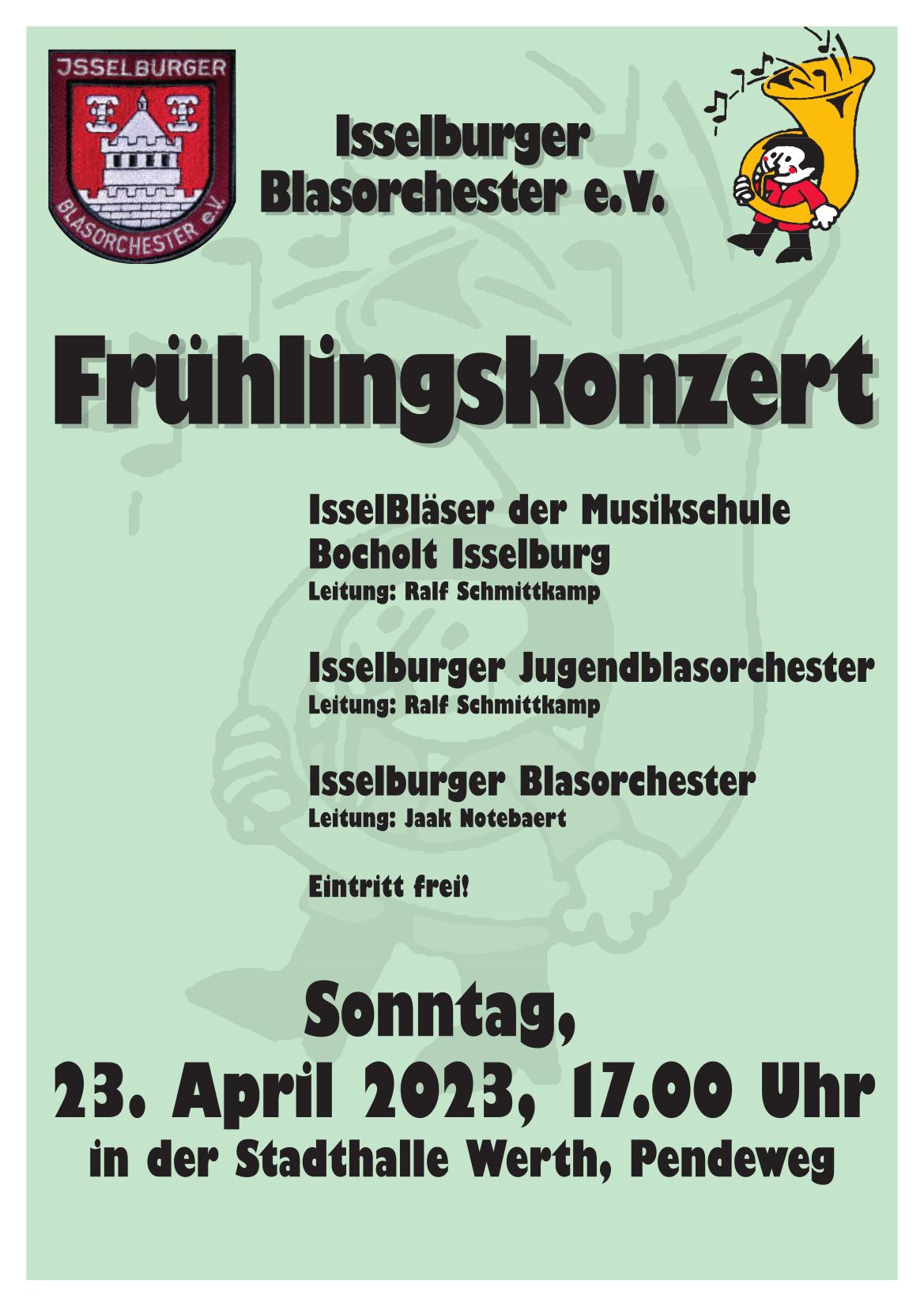 Die IsselBläser, das Jugendblasorchester und das Blasorchester möchten Sie mit schwungvoller Musik in den Frühling begleiten.