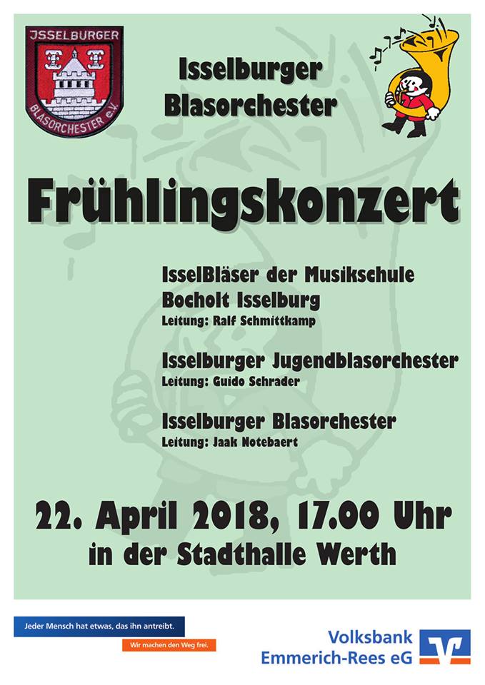 Das diesjährige Frühlingskonzert findet am Samstag, den 06.04.2019, ab 17 Uhr, in der Stadthalle Werth statt.