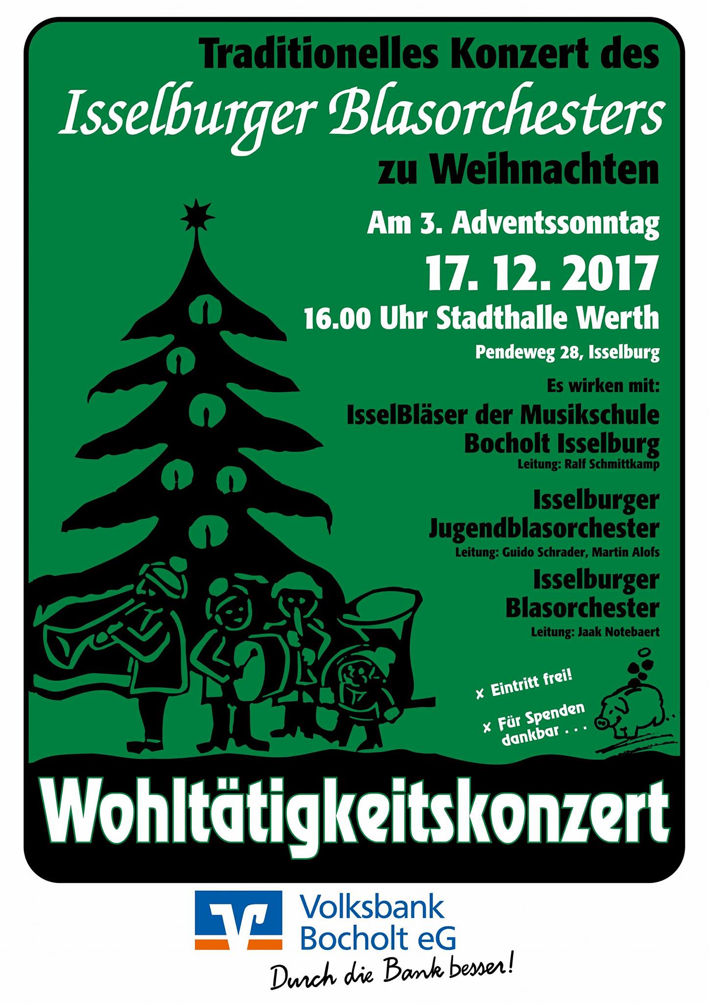 Herzliche Einladung zu unserem traditionellen Wohltätigkeitskonzert am 3. Adventssonntag. Das Konzert findet am 17.12.2017, ab 16:00 Uhr, in der Stadthalle Werth statt.