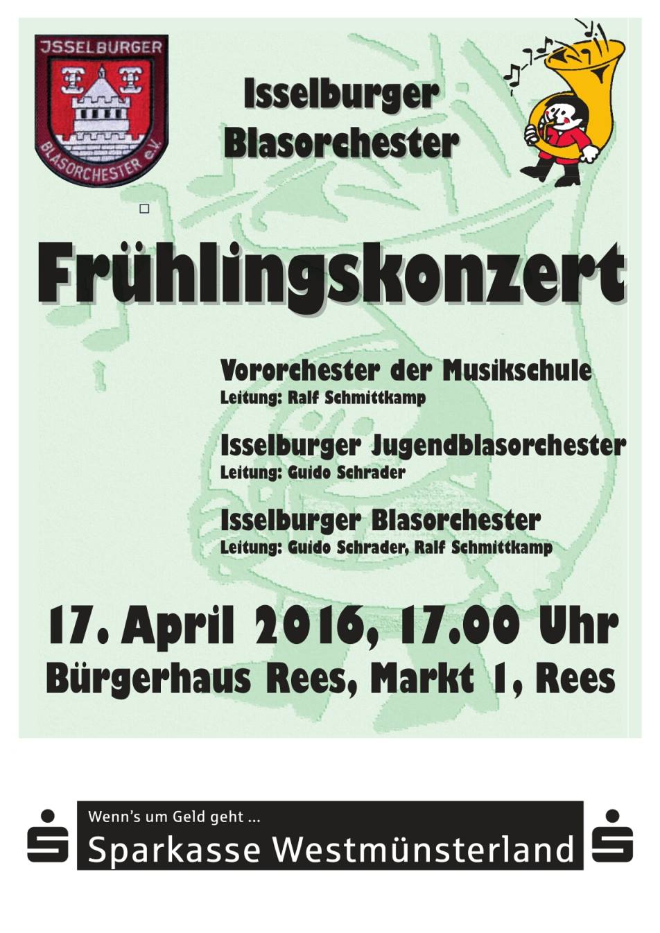 Wir möchten Sie herzlich zu unserem Frühlingskonzert am 17. April 2016 um 17.00 Uhr im Bürgerhaus Rees (Markt 1) einladen!