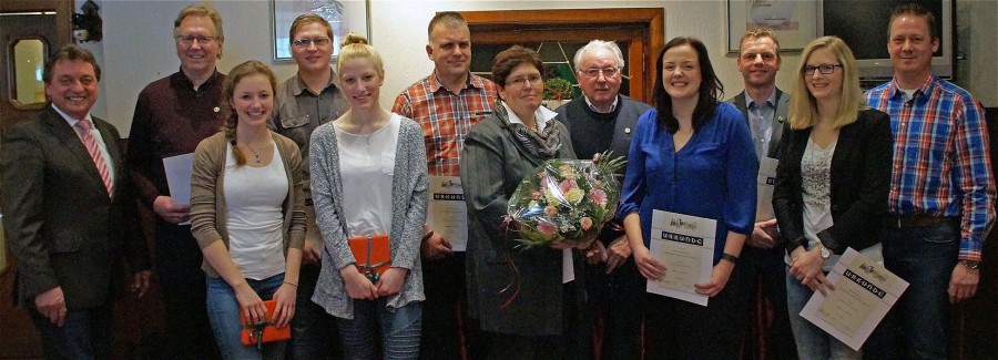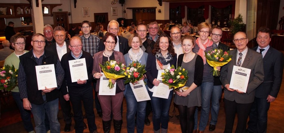 Für ihre Vereinsmitgliedschaften wurden folgende anwesende Jubilare auf der Jahreshauptversammlung 2015 geehrt (von links nach rechts):